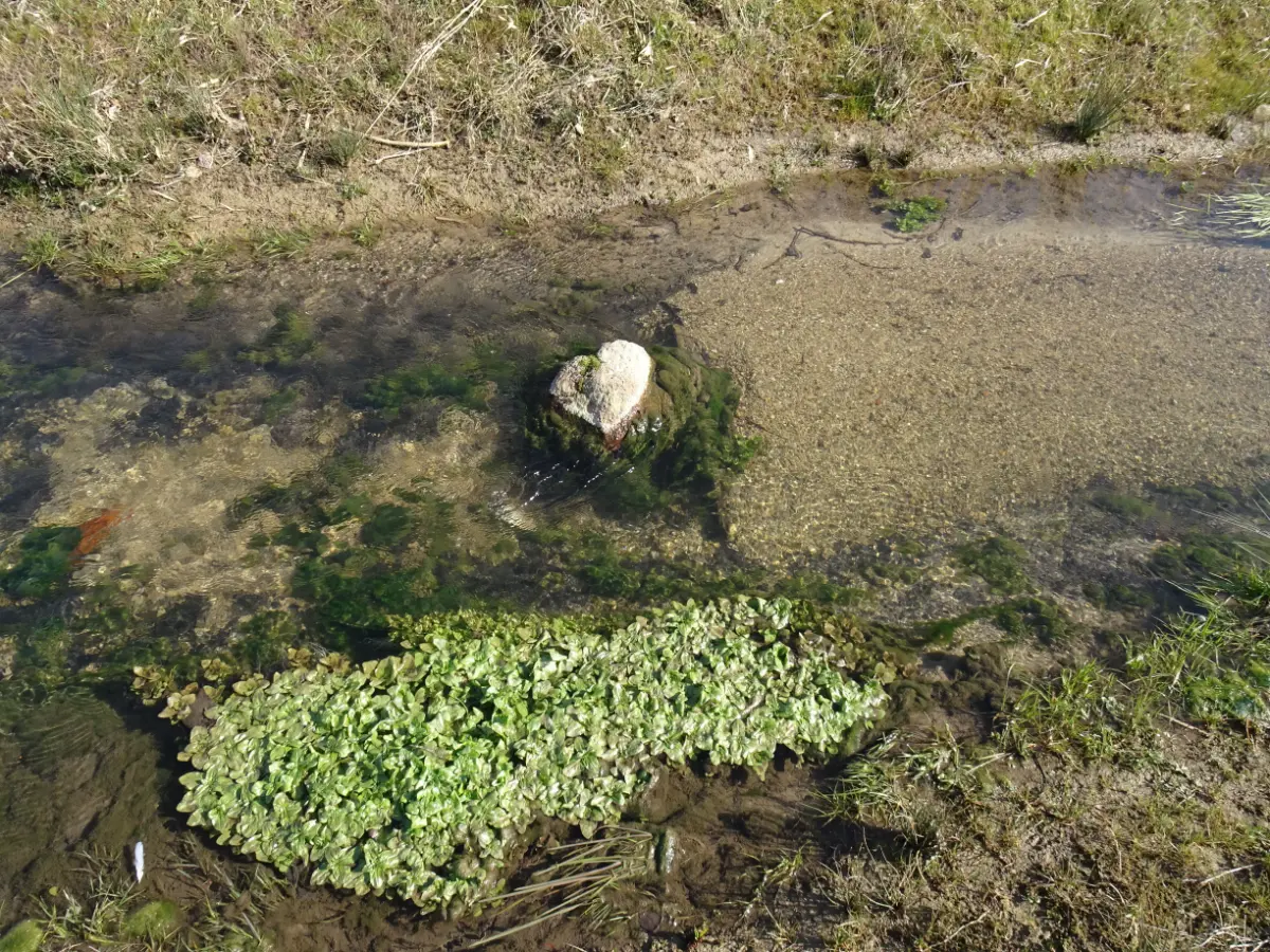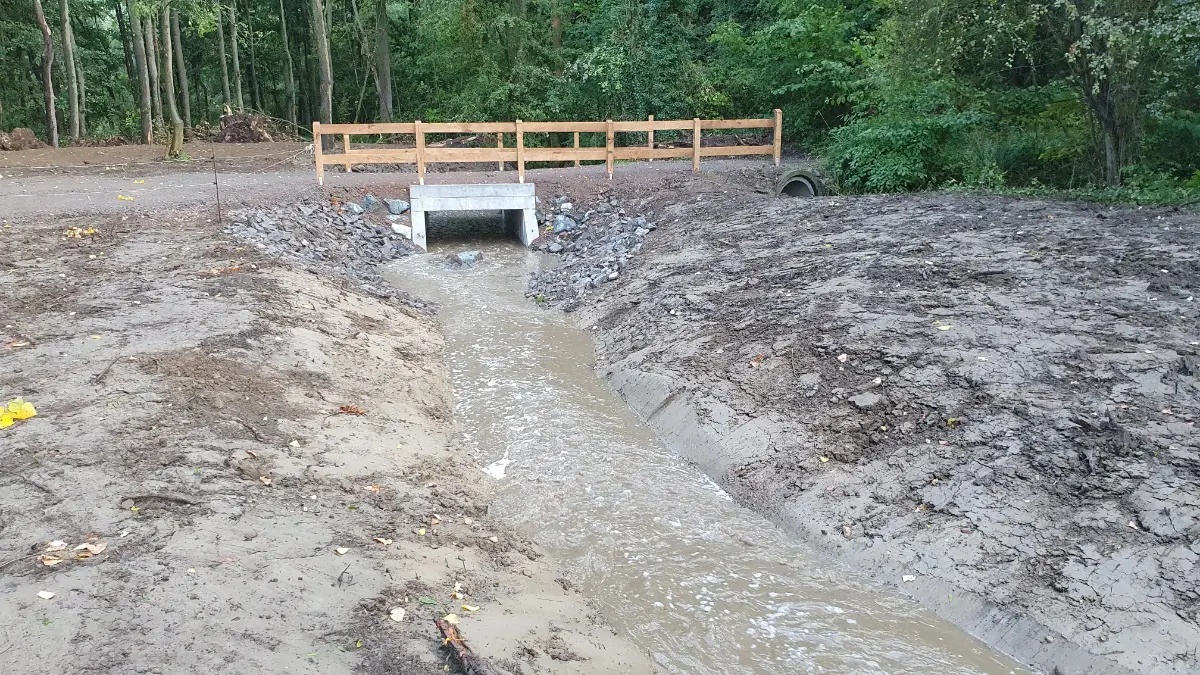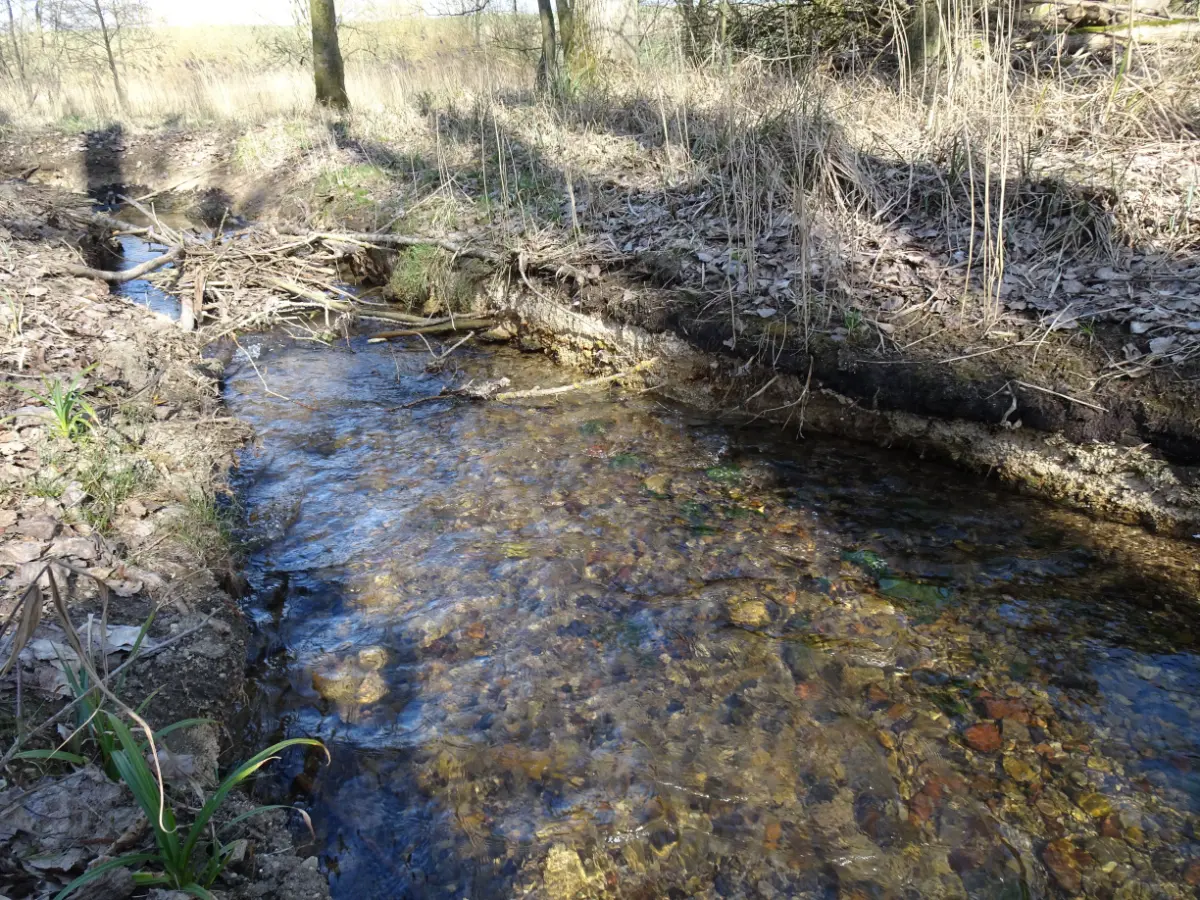 Strukturmaßnahmen beinhalteten punktuellen Kies- und Störstein-Einbau, Totholzinstallationen sowie die Pflanzung standortgerechter Ufergehölze. Die Sohlsubstrate wurden mit Naturkorn (8/64 mm) gestaltet, um Flachwasserbereiche und Laichhabitate für Fische wie die Groppe zu schaffen. Zur Verbesserung der Durchwanderbarkeit wurde ein Rahmendurchlass unter einem landwirtschaftlich genutzten Weg gebaut, der die Substratkontinuität gewährleistet.